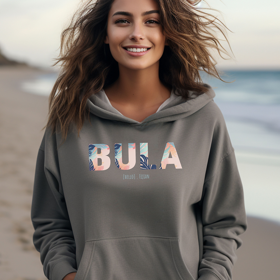 Bula Fiji Hooded Sweatshirt - Charcoal